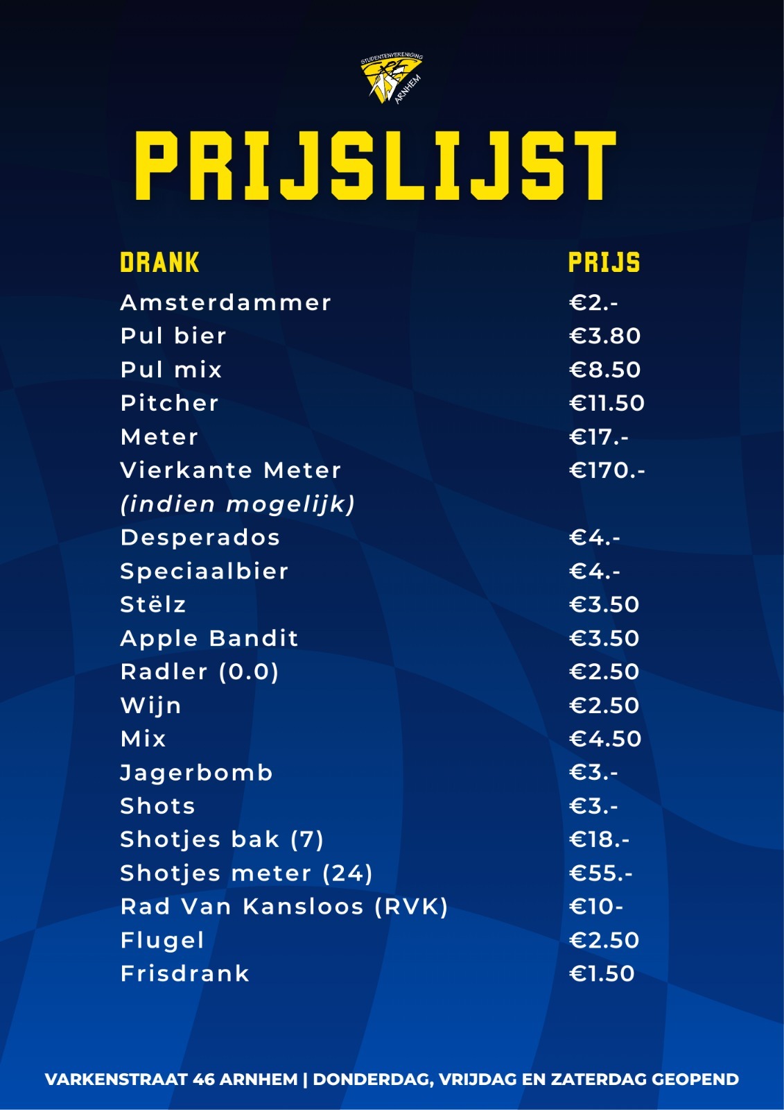 - Dinsdag: 20:00 – 01:00 (ledenavond)